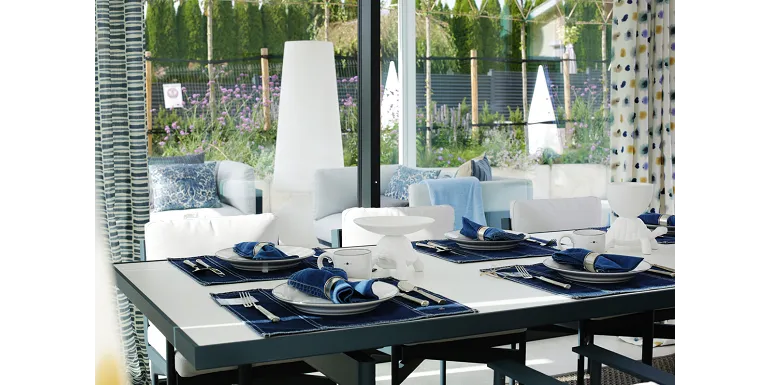 - Dbaj o przestrzeń dla każdego gościa, zapewniając minimum 50 cm na talerz i swobodne położenie rąk.